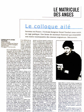 Denzsö Tandori, Corneilles et autres volatiles, Editions Virgile, Collection Ulysse fin de siècle, 2002